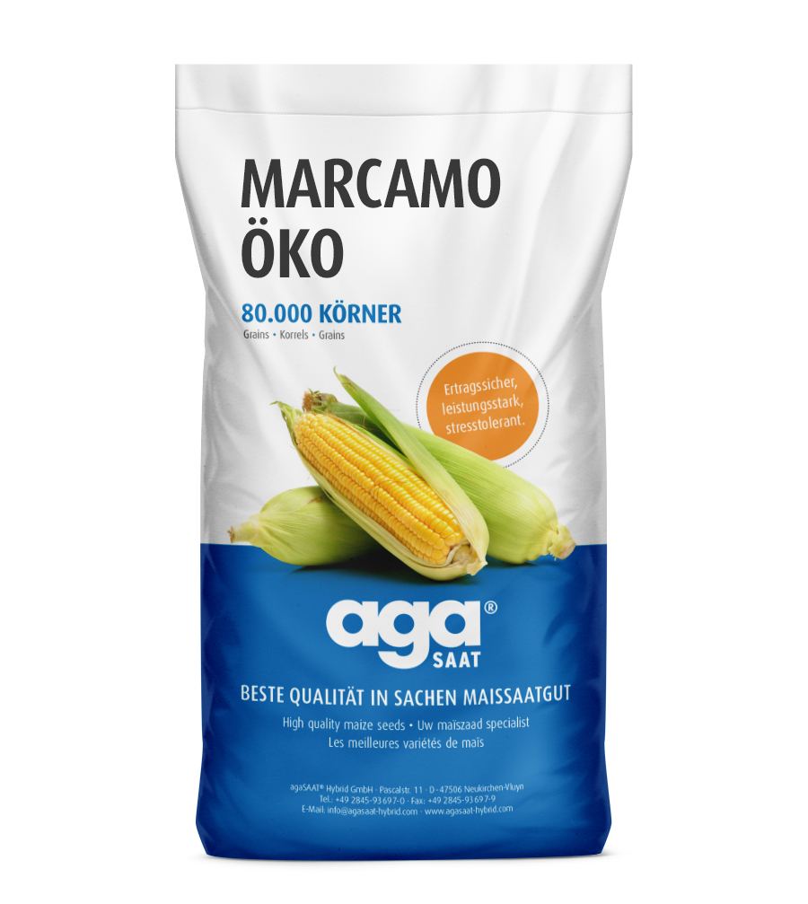 MARCAMO ist die ideale Doppelnutzungssorte im frühen Bereich. Die im Reifebereich 190 angesiedelte Hybride überzeugt im Einsatz als Biogas – und Silomaissorte. Ihre zügige Jugendentwicklung und Frühreife bescheren Ihnen einen zügigen Aufwuchs und eine sichere Abreife. Ein hoher Stärkegehalt und –ertrag gepaart mit einer guten Restpflanzenverdaulichkeit liefern Ihnen eine energiereiche Futtersilage. Auch für den Einsatz in der Biogasanlage überzeugt der massige MARCAMO und liefert hohe Energieerträge/ha für eine gute Gasausbeute.