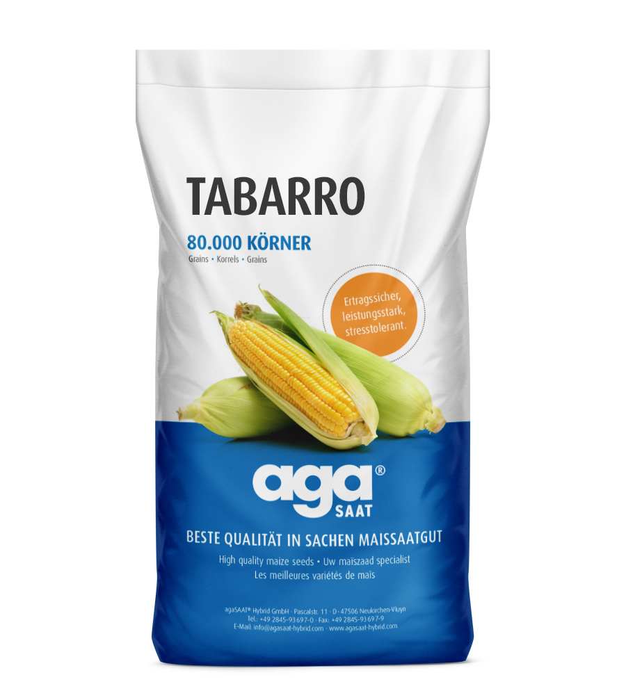 imposanter massiger Silomais mit hoch gewachsenen Pflanzen und mittelhohem Kolbenansatz. TABARRO ist